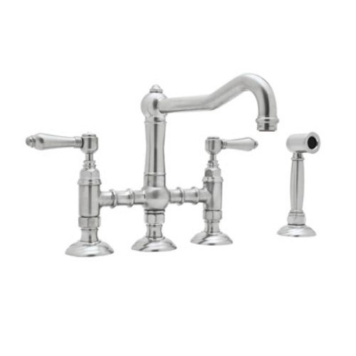 Rohl A1458LMWSAPC-2 Country Kitchen Three Leg Bridge Faucet with Metal Levers Sidespray and 9-Inch Reach Column Spout in Polished Chrome Review