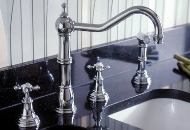 - FOUR HOLE KITCHEN FAUCET IN SATIN